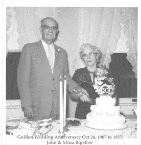 15923.48323 John William 10 Bigelow 3rd child and 3rd. son of George W. 9 (Freedom 8 , Ittia 7, Freedom 6, Isaac 5, Isaac 4, Isaac 3, Samuel 2, John 1) and Sarah E. (Miars) Bigelow was born 15 Feb 1886, Paulding Co. Ohio. He died 12 December 1958, Bowling Green Virginia, and is buried at the Cemetery in Bowling Green. Married October 24th, 1907 Mina Viola Starks. She was the daughter of George A. & Viola R.(Wise) Starks. Born 12 May 1888, Otsego Co. Bagley Twp., Gaylord, Michigan. She died 18 July 1961, Alpena County, Alpena, Michigan, and was buried in Bowling Green Virginia.