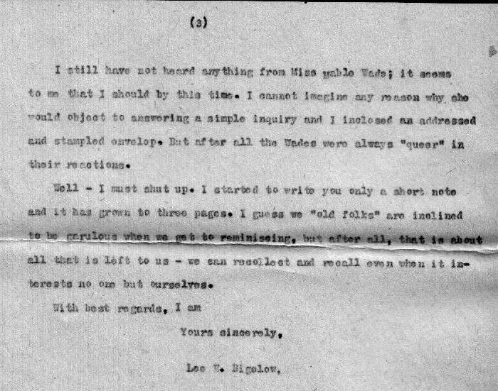 As you can see, this letter was written by Lee E. Bigelow, descendant of